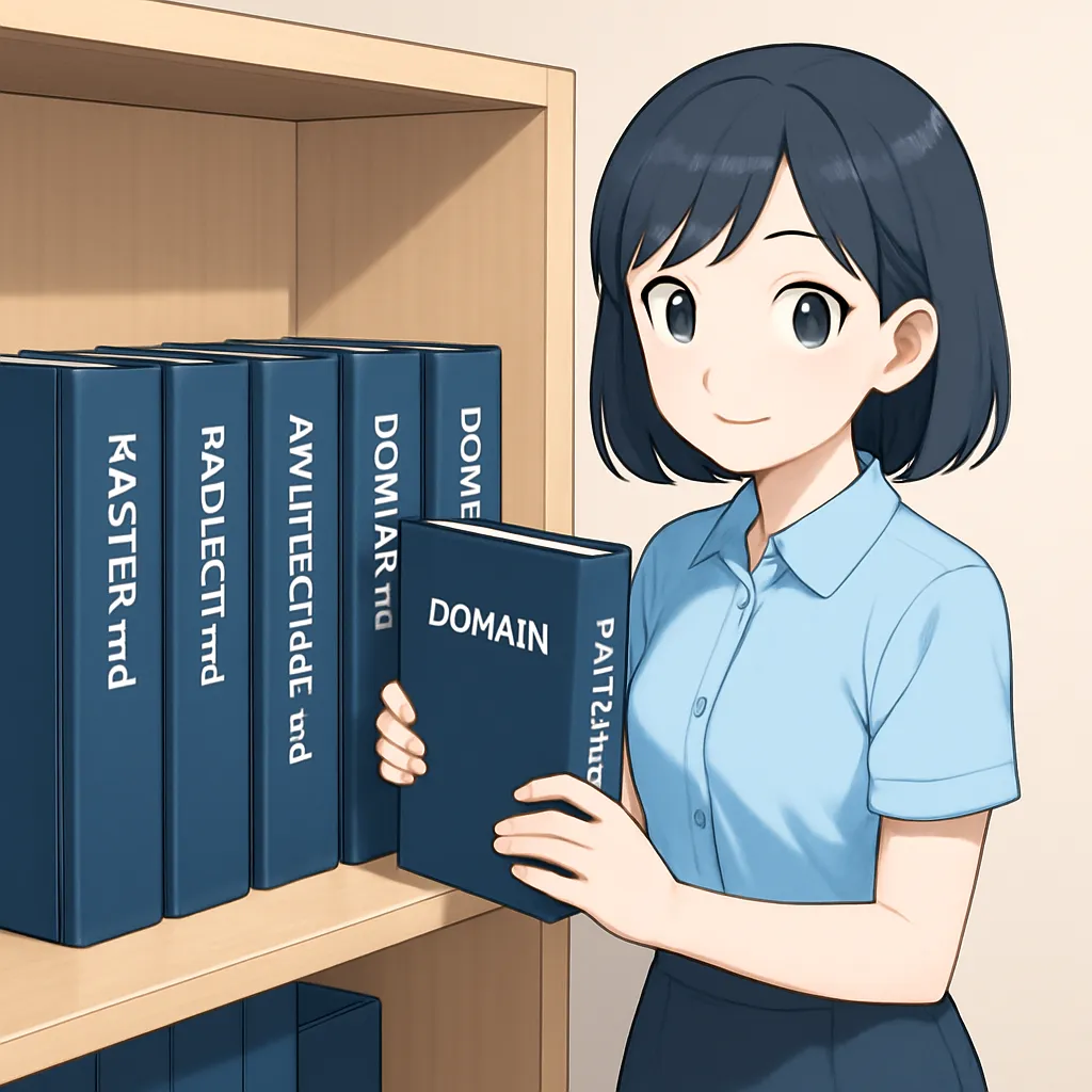 ARCHITECTURE.mdã®èšèšå³ãèŠãªãããããã®æè¡ã¹ã¿ãã¯ã§ãé¡ãïŒããšAIã«æç€ºãåºããŸããDOMAIN.mdã®ããžãã¹ã«ãŒã«ãå®ããªãããããã®èŠä»¶ã§æ©èœãäœã£ãŠïŒããšå ·äœçã«åœä»€ããŸãã