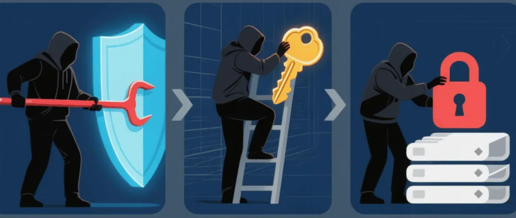 ランサムウェア攻撃の大多数は、外部から不正にシステムに侵入する → 内部で権限を拡大する → ファイルを暗号化するという流れで進みます。
